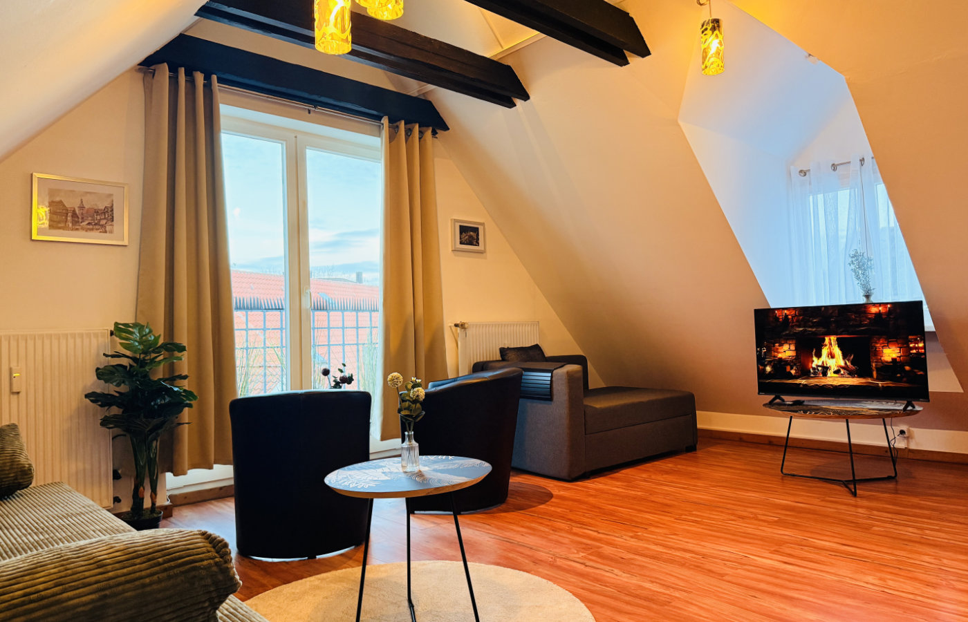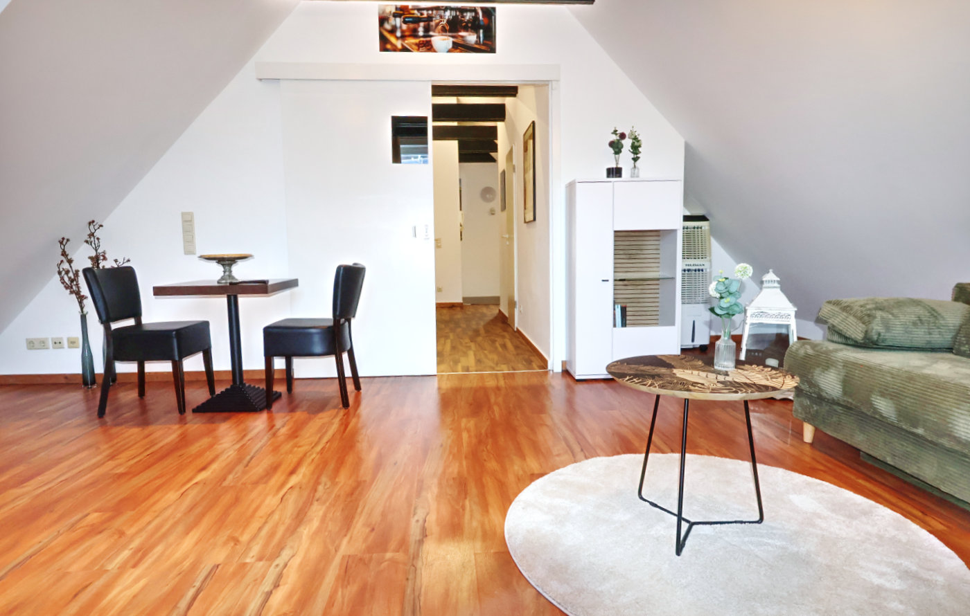 Neben unserer Gastronomie bieten wir eine stilvolle, frisch renovierte und komplett neu möblierte 60 m² Wohnung zur Kurzzeitvermietung an – direkt am Obermarkt 1, im Herzen der historischen Altstadt von Hattingen.